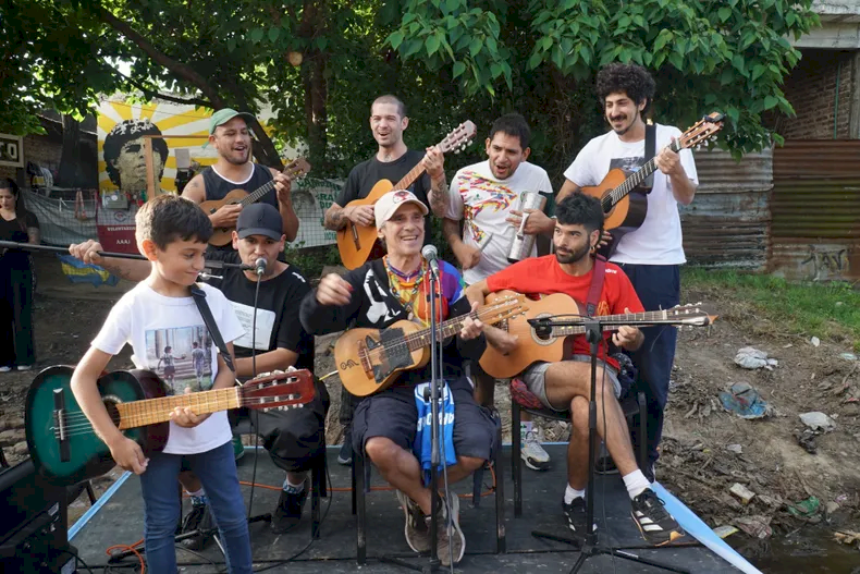 Manu Chao visitó la casa de Diego Maradona en Villa Fiorito y cantó para los vecinos