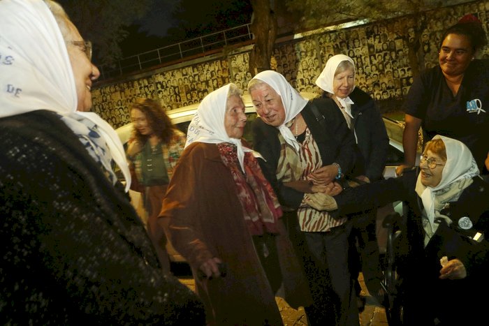 Las Madres Carmen Arias, Josefa "Pina" de Fiore, Visitación de Loyola -"Visi", para todos los aquí presentes, que corearon su nombre con un "olé olé olé"-, Irene Molinari de Cheuque, Sara Mrad cantaron el feliz cumpleaños y tomaron la palabra. Y también, desde imágenes y textos que enviaron, María de Domínguez, Azucena Díaz, Evel "Beba" de Petrini. En sus sillas de ruedas algunas, con sus dificultades para caminar, increíblemente vitales a su edad -Visi cumplió 100 años el pasado 17 de octubre- sonaron potentes y claras, agradecidas y felices.