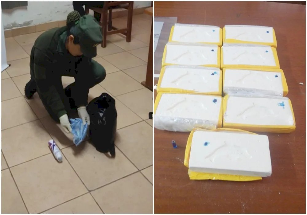 El incidente ocurrió cuando los gendarmes notaron que la mujer circulaba con una mochila por un paso no habilitado. Durante la inspección, realizada en presencia de testigos, los funcionarios descubrieron que la mochila contenía nueve paquetes rectangulares con una sustancia blancuzca.